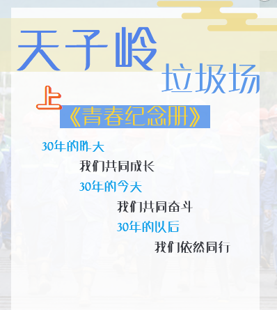 導讀:本文記錄了杭州天子嶺30年來的風雨變化,也記錄了工作人員30年來的辛勤付出。照片及文字素材來源于固廢公司張棟鵬 女士。正文:30年前的我們帶著青春年少的迷茫踏進了你這片熱土我們愿和你一起把杭城打造得更加清秀我們愿和你一起為市民提供更整潔的環(huán)境從此以后你深深烙進我們的生命讓我們甘愿為你守候在青春...