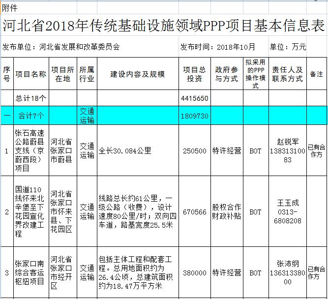 日前,省發(fā)布了2018年傳統(tǒng)基礎(chǔ)設(shè)施領(lǐng)域,鼓勵(lì)和引導(dǎo)民間資本進(jìn)入能源、交通運(yùn)輸、水利、環(huán)境保護(hù)、農(nóng)業(yè)、林業(yè)、重大市政工程等傳統(tǒng)基礎(chǔ)設(shè)施領(lǐng)域,共18個(gè)項(xiàng)目,涉及、流域綜合治理等7個(gè)環(huán)保項(xiàng)目,詳情如下:河北省2018年傳統(tǒng)基礎(chǔ)設(shè)施領(lǐng)域PPP項(xiàng)目為激發(fā)民間投資活力,鼓勵(lì)和引導(dǎo)民間資本進(jìn)入能源、交通運(yùn)輸、水...