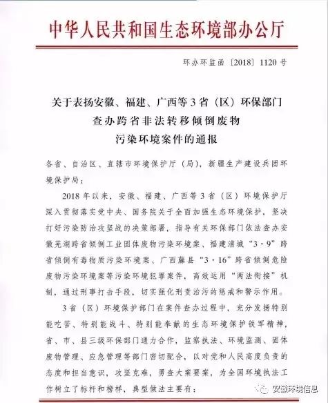 因指導(dǎo)有關(guān)環(huán)保部門依法查辦蕪湖跨省傾倒污染環(huán)境案,為全國環(huán)境執(zhí)法工作樹立了標(biāo)桿和榜樣,近日,安徽環(huán)保廳被生態(tài)環(huán)境部辦公廳通報表揚(yáng)。通報指出,2018年以來,安徽、福建、廣西等3省(區(qū))環(huán)境保護(hù)廳深入貫徹落實黨中央、國務(wù)院關(guān)于全面加強(qiáng)生態(tài)環(huán)境保護(hù),堅決打好污染防治攻堅戰(zhàn)的決策部署,指導(dǎo)有關(guān)環(huán)保部門依法...