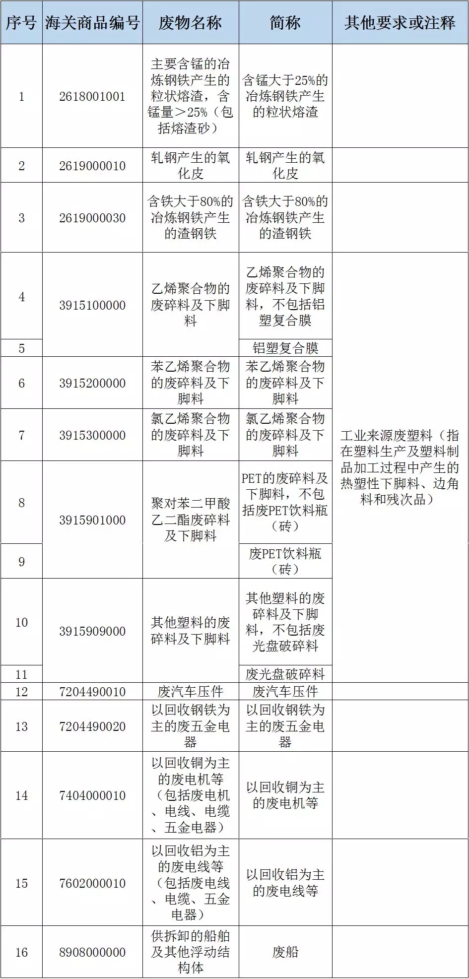 生態(tài)環(huán)境部今日召開(kāi)例行新聞發(fā)布會(huì)。劉友賓介紹,近日,生態(tài)環(huán)境部、商務(wù)部、發(fā)展改革委、海關(guān)總署聯(lián)合印發(fā)《關(guān)于調(diào)整<進(jìn)口廢物管理目錄>的公告》,分批調(diào)整《進(jìn)口廢物管理目錄》:將廢五金、廢船、廢汽車壓件、冶煉渣、工業(yè)來(lái)源廢塑料等16種固體廢物調(diào)整為禁止進(jìn)口,自2018年12月31日起執(zhí)行;將不...