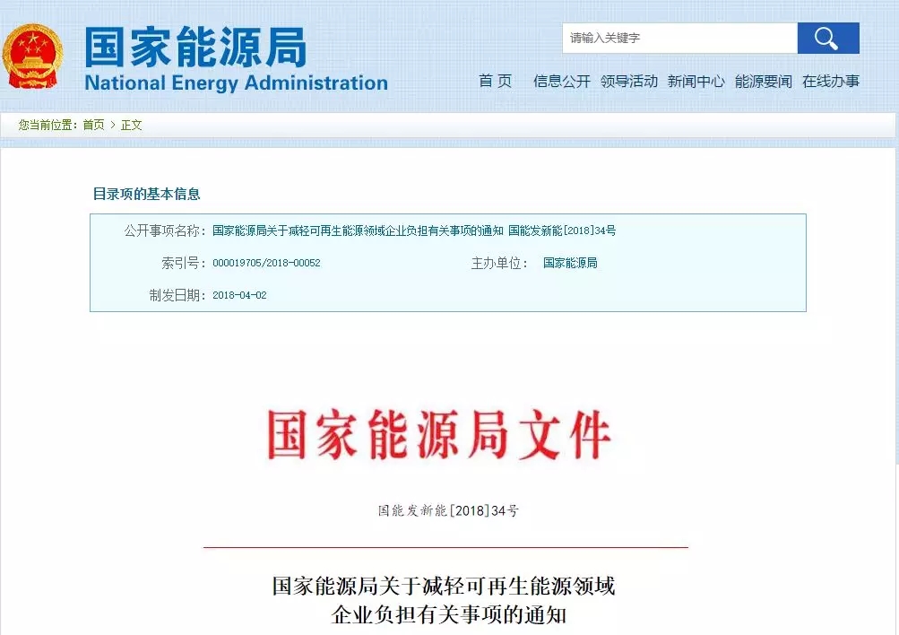 2018年4月26日,國(guó)家能源局官網(wǎng)公布《關(guān)于減輕可再生能源領(lǐng)域企業(yè)負(fù)擔(dān)有關(guān)事項(xiàng)的通知》,進(jìn)一步規(guī)范可再生能源行業(yè)管理,減輕可再生能源企業(yè)(含其他機(jī)構(gòu)和個(gè)人投資者)投資經(jīng)營(yíng)負(fù)擔(dān),促進(jìn)可再生能源成本下降。 國(guó)家能源局近期發(fā)布的《可再生能源電力配額及考核辦法征求意見(jiàn)稿》,提出可再生能源電力配額按照各省級(jí)...