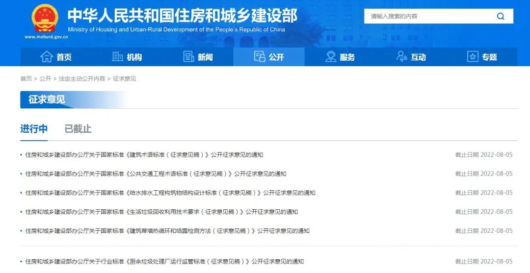 近日,住房和城鄉(xiāng)建設部辦公廳就國家標準《建筑術語標準》《公共交通工程術語標準》《給水排水工程構筑物結構設計標準》《生活垃圾回收利用技術要求》《建筑幕墻熱循環(huán)和結露檢測方法》《廚余垃圾處理廠運行監(jiān)管標準》公開征求意見,意見反饋截止時間為2022年8月5日。點擊下方藍色標題了解標準詳情。《建筑術語標準》...