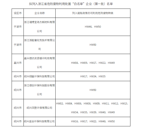 關(guān)于擬列入浙江省危險(xiǎn)廢物利用處置“白名單”企業(yè)(第一批)的公示 根據(jù)《國務(wù)院辦公廳關(guān)于印發(fā)強(qiáng)化危險(xiǎn)廢物監(jiān)管和利用處置能力改革實(shí)施方案的通知》(國辦函〔2021〕47號)、《關(guān)于印發(fā)〈長江三角洲區(qū)域固廢危廢利用處置“白名單”和“黑名單&rdq...