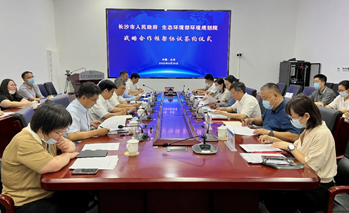 2022年6月30日,環(huán)境規(guī)劃院與長沙市人民政府簽署生態(tài)環(huán)境保護工作戰(zhàn)略合作框架協(xié)議。環(huán)境規(guī)劃院陸軍書記、王金南院長、萬軍總工、嚴(yán)剛副院長、各部門代表,長沙市人民政府劉匯副市長,長沙市生態(tài)環(huán)境局潘勝強局長、趙玲芳副局長等相關(guān)負(fù)責(zé)同志出席簽約儀式。 簽約儀式前,雙方開展了座談交流。長沙市生態(tài)環(huán)境局對環(huán)...