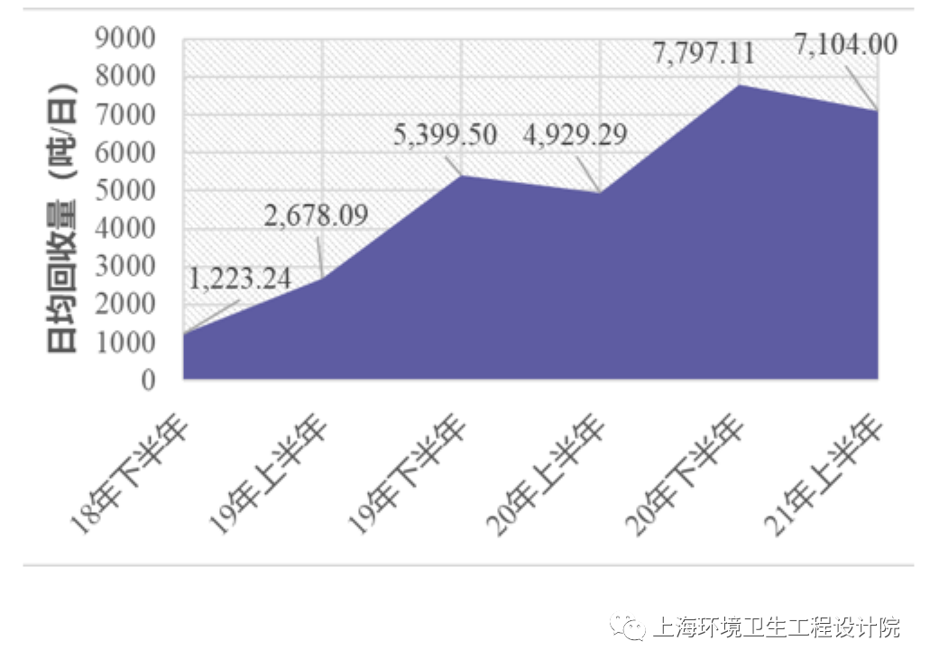 一、上??苫厥瘴锂a(chǎn)量有多少?(一)可回收物總體統(tǒng)計情況2021年,上海市可回收物信息化平臺統(tǒng)計到主體企業(yè)上報可回收物量約5000噸/日,另外據(jù)相關(guān)部門估算的再生資源回收體系中約有2000噸/日為生活源可回收物,可回收物產(chǎn)量總計約7000噸/日。2018-2021年上??苫厥瘴锂a(chǎn)量(二)居民家庭可回收...