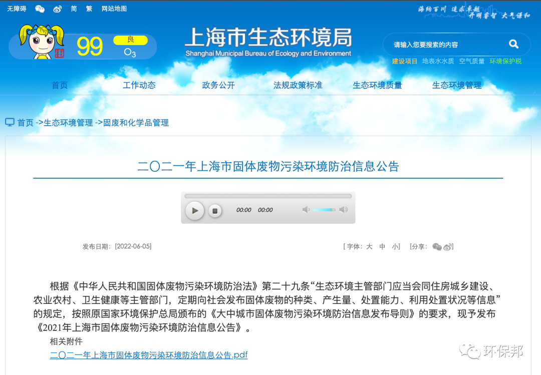 2022年6月,上海市生態(tài)環(huán)境局發(fā)布了《2021 年上海市固體廢物污染環(huán)境防治信息公告》,公布了2021年上海市的固廢產(chǎn)生數(shù)據(jù),通過對(duì)生活垃圾的數(shù)據(jù)進(jìn)行一定的分析,可以得出一些有意思和有價(jià)值的參考信息。公布數(shù)據(jù)中還有污泥、一般工業(yè)固廢、危廢、電子廢物等的一些數(shù)據(jù),也許會(huì)看情況,再分析一篇。1 上海市...