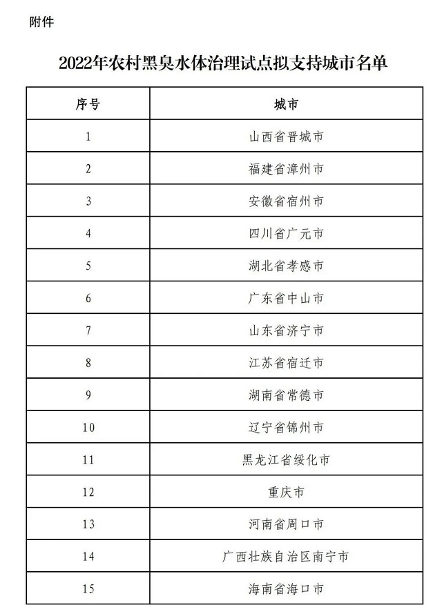 按照《財(cái)政部辦公廳 生態(tài)環(huán)境部辦公廳關(guān)于開展2022年農(nóng)村黑臭水體治理試點(diǎn)工作的通知》(財(cái)辦資環(huán)〔2022〕5號(hào))要求,財(cái)政部會(huì)同生態(tài)環(huán)境部組織專家對(duì)各地農(nóng)村黑臭水體治理申報(bào)城市實(shí)施方案進(jìn)行了競(jìng)爭(zhēng)性評(píng)審。根據(jù)競(jìng)爭(zhēng)性評(píng)審結(jié)果,擬將15個(gè)城市確定為2022年支持的農(nóng)村黑臭水體治理試點(diǎn)城市(詳見附件)。 ...