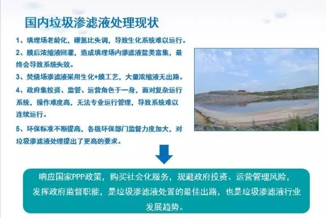 在2017年5月中國環(huán)聯(lián)第一屆固廢技術(shù)論壇上,大連廣泰源環(huán)??萍加邢薰緦ξ覈鴿B濾液處理現(xiàn)狀進(jìn)行了總結(jié),并對垃圾滲濾液的處置提出了響應(yīng)國家PPP政策,購買社會化服務(wù),規(guī)避政府投資、運營管理風(fēng)險,發(fā)揮政府監(jiān)督職能,是垃圾滲濾液處置的行業(yè)發(fā)展趨勢。