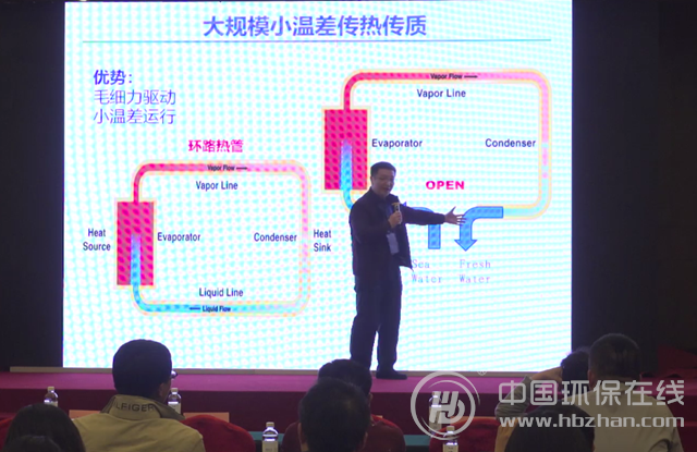 這跟我過(guò)去的經(jīng)歷有關(guān),我過(guò)去做散熱的,這就是一個(gè)典型的熱管,熱管是大規(guī)模工業(yè)用,包括機(jī)器就有熱管,在CPU和旁邊的散熱器之間,就用熱管來(lái)做,它是新力驅(qū)動(dòng)的,在熱的那端發(fā),在冷的那端冷凝,然后用毛細(xì)力把水拿過(guò)來(lái),但是我們知道,冷凝以后的水是非常好的,高品質(zhì)的淡水。我們做的工作就把熱管打開(kāi),得到好的水,拿走了,給它補(bǔ)回去的水(補(bǔ)海水),這整個(gè)就是我們的思路。