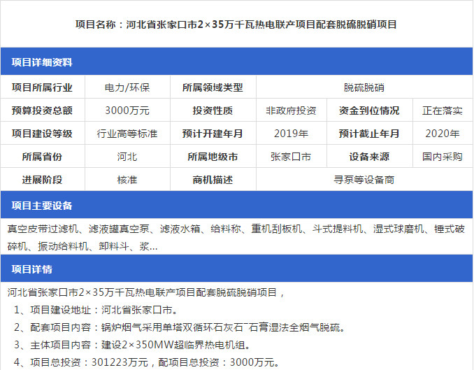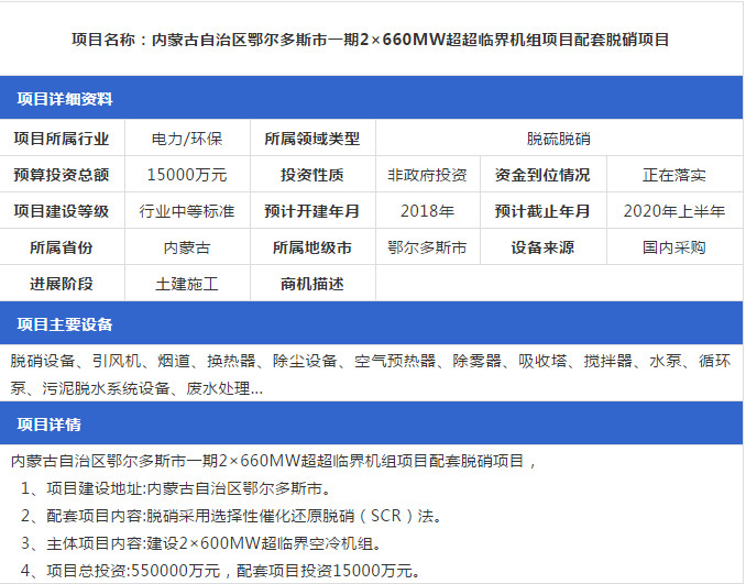 2019年1月份最新的全國脫硫脫硝工程項(xiàng)目匯總情況,包括SCR脫硝項(xiàng)目、SNCR脫硝項(xiàng)目等,詳情如下: