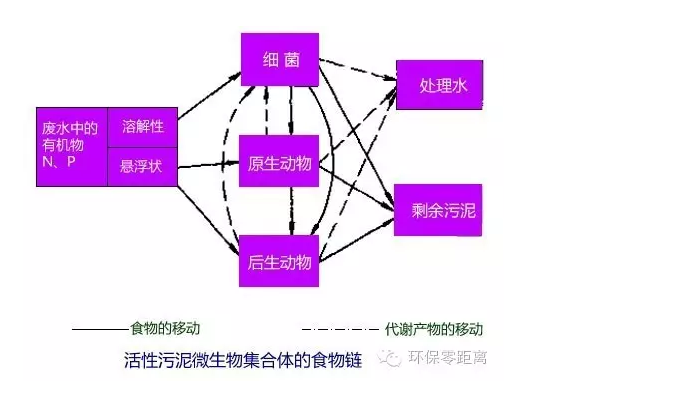 活性污泥中的微生物體主要由各種細(xì)菌和原生動物組成,同時還存在著真菌和以輪蟲為主的后生動物。原生動物以細(xì)菌為食物,后生動物以細(xì)菌和原生動物為食物。在活性污泥中的有機(jī)物、細(xì)菌、原生動物和后生動物構(gòu)成了一個相對穩(wěn)定的生態(tài)系統(tǒng)和食物鏈。