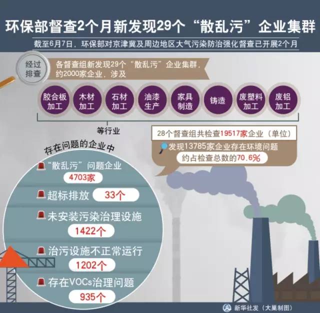 截至6月7日,京津冀及周邊地區(qū)大氣污染防治強(qiáng)化督查已開展2個(gè)月,從強(qiáng)化督查情況看,“散亂污”問題最為突出,占查出環(huán)境問題的36.6%。
