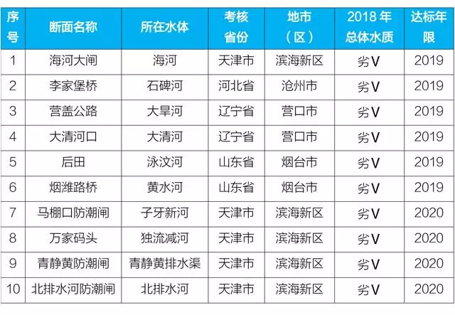 基本消除重點區(qū)域劣V類國控斷面。以《長江保護修復(fù)攻堅戰(zhàn)行動計劃》明確的12個劣V類國控斷面、環(huán)渤海入海河流中10個劣V類國控斷面為重點(詳見附表),深入開展專項整治,進一步壓實地方政府責(zé)任。到2020年,長江流域和環(huán)渤海入海河流基本消除劣V類國控斷面。