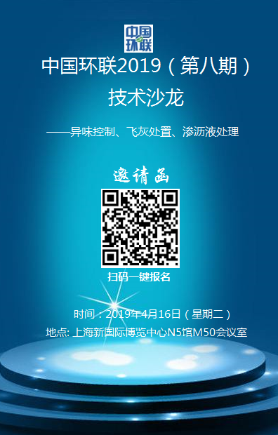 2019年4月16日, 中國環(huán)聯(lián)2019(第八期)技術(shù)沙龍——垃圾處理設(shè)施異味治理、焚燒飛灰處理處置、滲瀝液處理典型技術(shù)案例交流會將在第二十屆中國環(huán)博會(上海)期間召開。屆時,將邀請典型案例企業(yè)代表、行業(yè)精英、資深專家等參加,進行深入研討與交流,傳播先進理念、分享成功經(jīng)驗、共同探討行業(yè)發(fā)展最新趨勢。望有關(guān)單位積極踴躍參加。