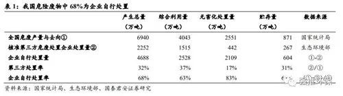 我國(guó)2017 年度實(shí)際收集和處置量為2252萬(wàn)噸(含收集28萬(wàn)噸),僅占國(guó)統(tǒng)危廢產(chǎn)生量的32%,即,目前我國(guó)的危險(xiǎn)廢物官方統(tǒng)計(jì)產(chǎn)量中,68%由企業(yè)自行處理。