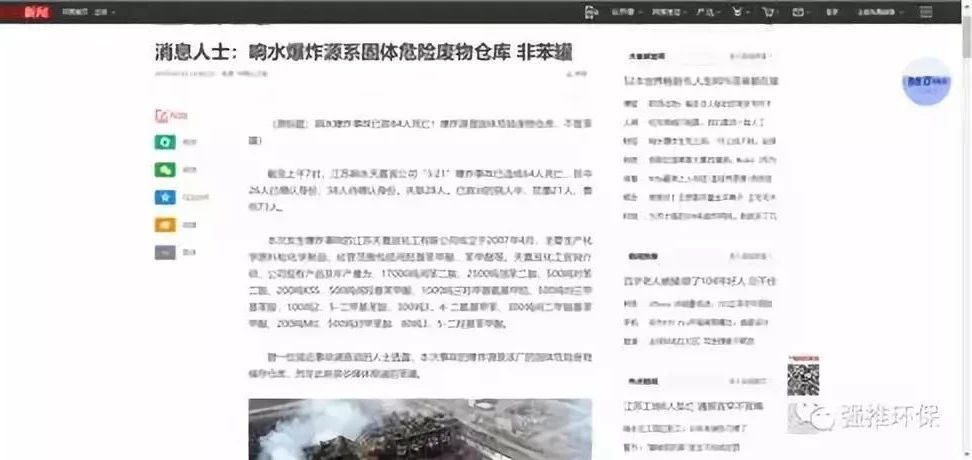 近日,針對(duì)響水爆炸事故,有文章指出,“據(jù)一位接近事故調(diào)查組的人士透露,本次事故的爆炸源是該廠的固體危險(xiǎn)廢物儲(chǔ)存?zhèn)}庫(kù),而非此前很多媒體報(bào)道的苯罐。”目前這一報(bào)道,已被多家主流媒體轉(zhuǎn)載。