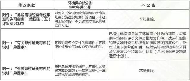 2016年10月25日,為做好新建危險廢物利用處置項目在試生產(chǎn)期間經(jīng)營許可證的申請和審批工作,環(huán)保部對《危險廢物經(jīng)營單位審查和許可指南》部分條款進(jìn)行修改,對照表如下: