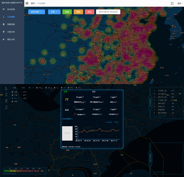 平臺具備GIS地圖展示、環(huán)境數(shù)據(jù)綜合監(jiān)視、報警通知、生態(tài)環(huán)境預(yù)測預(yù)報、監(jiān)測數(shù)據(jù)溯源回放、綜合報表生成/導(dǎo)出、生態(tài)環(huán)境指標(biāo)排名、數(shù)據(jù)對比分析、移動APP端展示等應(yīng)用功能,便于用戶對生態(tài)環(huán)境數(shù)據(jù)進(jìn)行第一時間掌握,有效提高監(jiān)管能力,并提供多維度的數(shù)據(jù)統(tǒng)計、分析,幫助用戶進(jìn)行生態(tài)環(huán)境治理、改善。