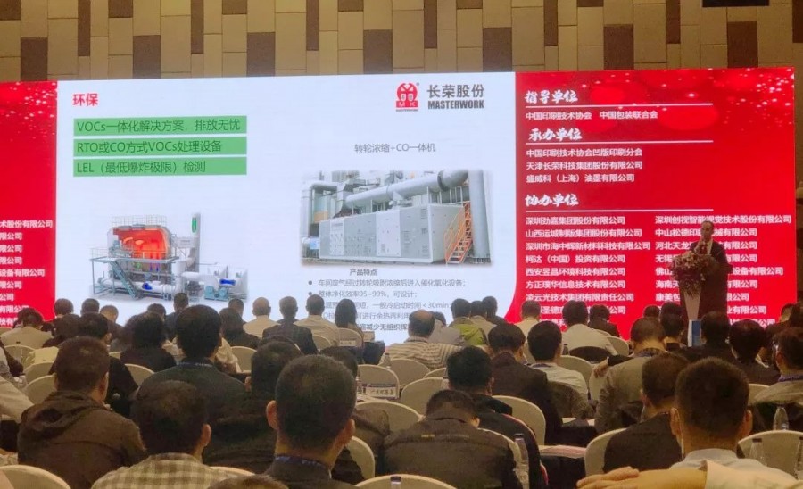 會議上長榮股份王總在講述“長榮股份煙包印刷解決方案”時,提到了備受煙包印刷行業(yè)重視的環(huán)保治理問題,并介紹其煙包印刷VOCs治理采用了華世潔自主研發(fā)的分子篩轉(zhuǎn)輪一體機,具有“設備價格低、運行費用少、凈化效率高、安全性能好”的優(yōu)勢。