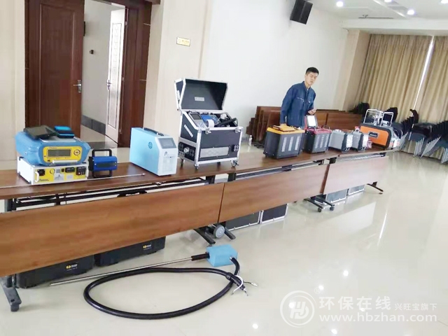 圖中(左一)為PF—300便攜式甲烷/總烴和非甲烷總烴測試儀