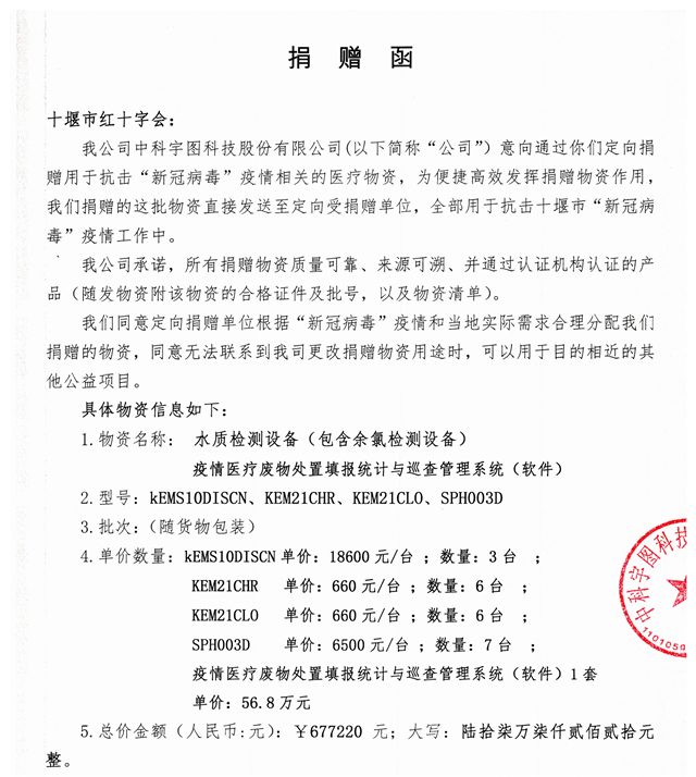 面對嚴峻的疫情形勢,中科宇圖積極響應國家號召,本著對社會負責的態(tài)度,積極投身疫情防控阻擊戰(zhàn)。2月11日,中科宇圖通過湖北省十堰市紅十字會,向疫情重災區(qū)十堰定向捐贈價值約70萬元的軟硬件防疫醫(yī)療物資,受贈單位十堰市生態(tài)環(huán)境局將用于抗擊十堰市“新冠肺炎”疫情工作當中。