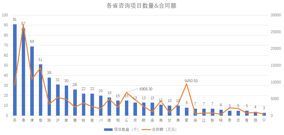 (1)生態(tài)環(huán)境部門(mén),主導(dǎo)了大量的咨詢(xún)項(xiàng)目(2019年占比42.45%),在處于摸清底數(shù)的行業(yè)初期,這一趨勢(shì)還會(huì)延續(xù)下去。