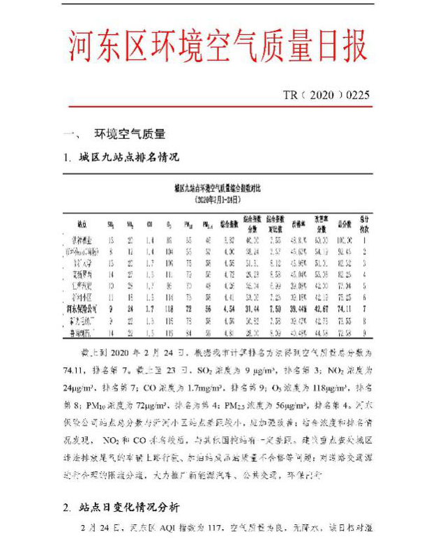 在環(huán)境管理技術(shù)指導(dǎo)過程中,公司堅持駐場人員指導(dǎo)服務(wù)+總部大數(shù)據(jù)分析支撐的雙管齊下服務(wù)模式,每日為臨沂市河?xùn)|區(qū)提供環(huán)境空氣質(zhì)量日報,提供針對污染源排查的數(shù)據(jù)分析報告,如分析2020年春節(jié)前后機動車變化情況對國控站點的數(shù)據(jù)影響程度的“春節(jié)效應(yīng)”、“祭祀效應(yīng)”等。