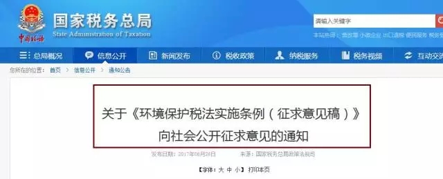 在環(huán)保稅法通過半年后(2017年6月26日),公眾得以正式參與建言獻策,財政部、國家稅務(wù)總局、環(huán)境保護部發(fā)布《中華人民共和國環(huán)境保護稅法實施條例(征求意見稿)》。