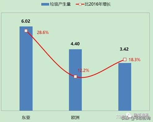 根據(jù)2018年12月世界銀行發(fā)布的調(diào)查報(bào)告,2016年全球城市生活垃圾產(chǎn)生量為20.1億噸。東亞太平洋地區(qū)是目前產(chǎn)生垃圾最多的區(qū)域,占世界垃圾總量的23%。盡管高收入國(guó)家僅占全球人口的16%,但產(chǎn)生的垃圾量卻超過(guò)世界垃圾總量的三分之一。