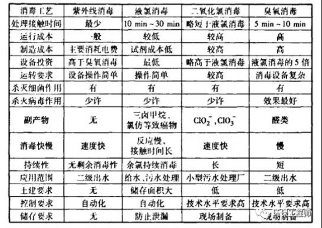3、對幾種消毒工藝的綜合比較