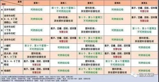 ▲日本某地垃圾回收時間表