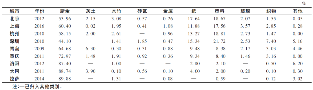 表3 我國典型城市生活垃圾組成成分
