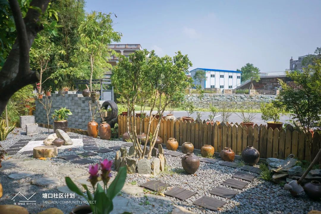 ⊙祖宅廁所對岸的村民家也用舊物改造起自己的庭院