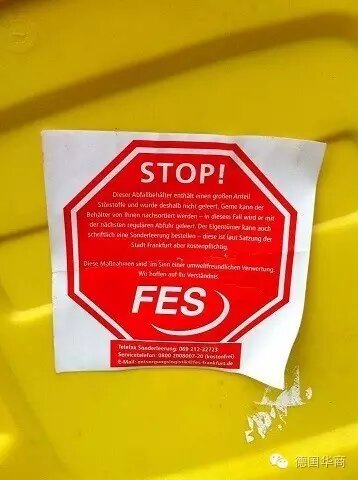 垃圾分類錯(cuò)誤,垃圾處理公司給與的警告(法蘭克福地區(qū))