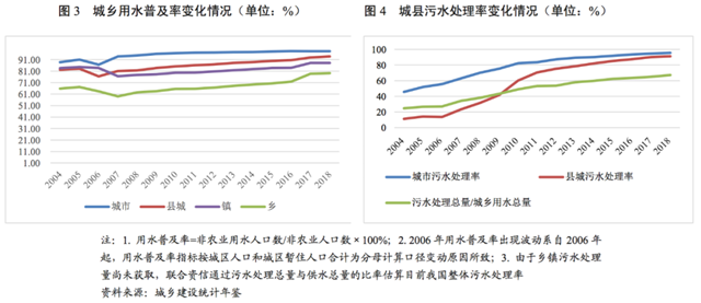 鄉(xiāng)鎮(zhèn)供水方面,2018年,我國鄉(xiāng)和建制鎮(zhèn)用水人口1.8億人,同比增長1.8%,鄉(xiāng)鎮(zhèn)年用水總量145.8億立方米,同比增長0.9%。2018年,我國鄉(xiāng)鎮(zhèn)的用水普及率分別為79.2%和88.1%,較城市98%的用水普及率尚有差異,鄉(xiāng)鎮(zhèn)供水市場尚有一定開發(fā)空間。