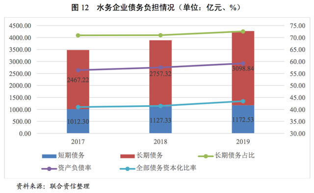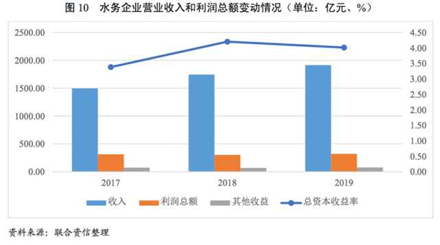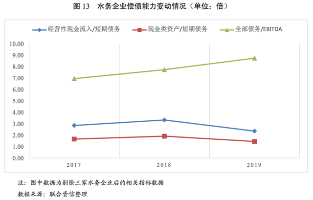 [5]聯(lián)合資信口徑水務企業(yè)樣本分析系以2019年底供水和污水收入占營業(yè)收入的45%及以上樣本口徑為基礎對比近三年指標變化情況