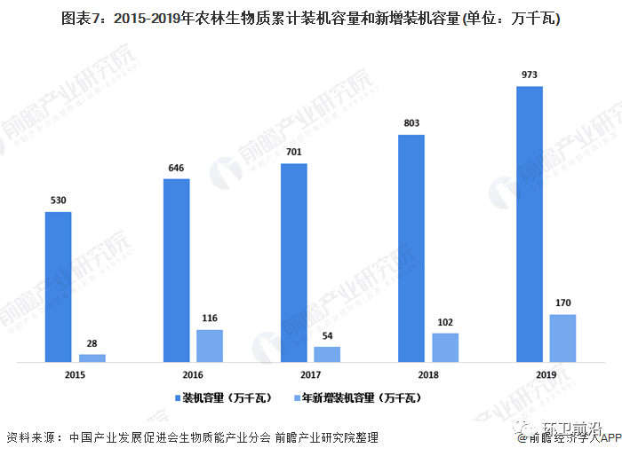 截至2019年底,全國(guó)25個(gè)省(區(qū)、市)農(nóng)林生物質(zhì)發(fā)電累計(jì)裝機(jī)容量973萬(wàn)千瓦,較2018年增長(zhǎng)21%,2019年新增裝機(jī)容量170萬(wàn)千瓦。