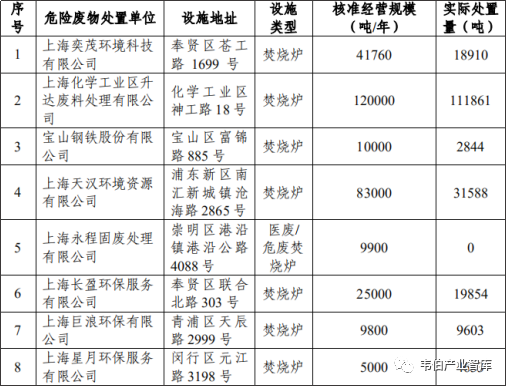 注:1、實際處置規(guī)模取整數(shù);2、上海永程固廢處理有限公司危廢和醫(yī)廢總焚燒處置能力為9900噸/年,2019年12月31日發(fā)證,2019年未實際處置。