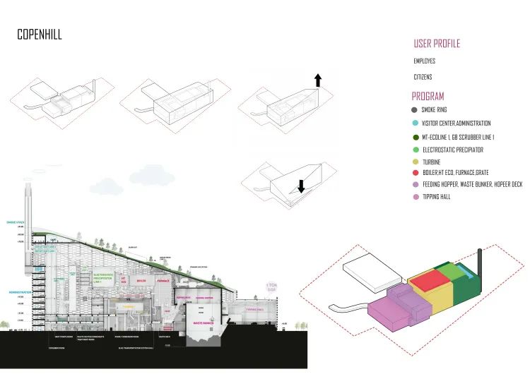 既能體驗(yàn)到戶外攀巖的樂趣,又能看到身后的城市景觀,這種感覺也是夠獨(dú)特了。這座環(huán)保型的垃圾發(fā)電廠,每年能夠處理當(dāng)?shù)鼐用?400,000 噸的垃圾,為 15 萬住戶提供電力和集中供暖。每天約有 250-350 輛卡車,將垃圾運(yùn)送到這里。垃圾會被扔進(jìn)熔爐焚燒,熔爐在最高運(yùn)轉(zhuǎn)效率時(shí),每小時(shí)能燃燒掉 70 噸的垃圾,這樣高效的操作,可以為哥本哈根 99% 的建筑物供熱,以此消除大量的煤炭和化石污染。
