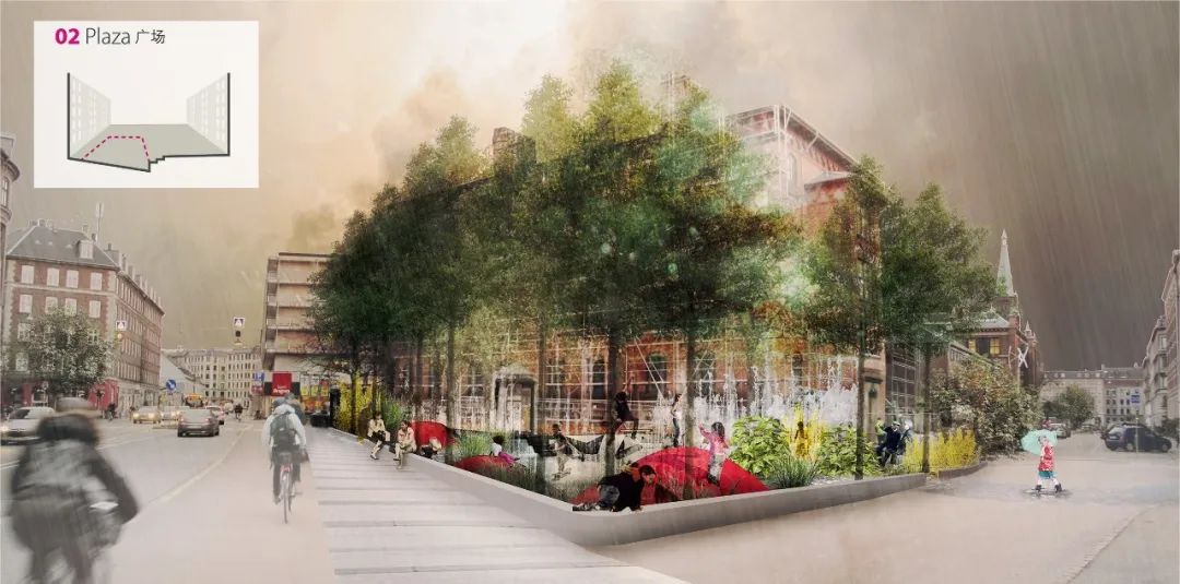 在海綿城市設(shè)計(jì)中,對(duì)城市宜居性的提升應(yīng)與對(duì)氣候的適應(yīng)并重。作為此方面的典范,丹麥?zhǔn)锥几绫竟械谋┯攴揽卦敿?xì)規(guī)劃提出了一套雄心勃勃的計(jì)劃,旨在幫助城市免受未來(lái)的暴雨之害??傮w規(guī)劃確立后,哥本哈根市政府開(kāi)始著手為城市的各個(gè)分區(qū)制定具體的海綿城市景觀設(shè)計(jì)方案。此次景觀設(shè)計(jì)將不僅能夠應(yīng)對(duì)日益頻繁的極端暴雨天氣,還可以大幅度提升城市的宜居性,造福今時(shí)與后世的居民。此外,整套規(guī)劃的總體耗資也低于傳統(tǒng)工程方案。