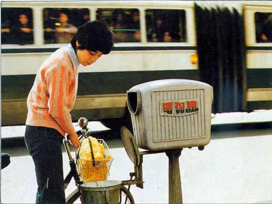 20世紀80年代上海街頭的廢物箱和痰盂罐,這也可以視為早期的“干濕分離”
