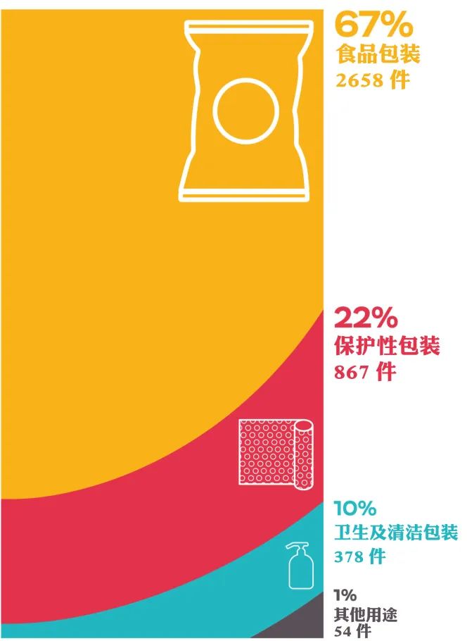 在所有一次性包裝類塑料制品中,67%為食品包裝,22%為保護(hù)性包裝,10%為衛(wèi)生及清潔包裝。