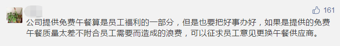 對此,推出該規(guī)定的上海某咨詢服務(wù)有限公司人事部負責(zé)人解釋:“每個工作日,公司清點人數(shù)后外送午餐,但每次都發(fā)現(xiàn)不少員工選要吃的菜吃,余下很大部分(包括飯)都被扔了?!?/span>負責(zé)人說,有的午餐幾乎動都沒有動過,甚至有員工領(lǐng)取后放在桌上三四天,直至壞掉扔進垃圾箱?!肮居胁簧倌贻p女員工,平時對飲食過分挑剔,為了有效制止浪費現(xiàn)象,公司領(lǐng)導(dǎo)作了上述規(guī)定?!?/span>其實,規(guī)定“倒掉飯菜要被辭退”的公司以前就有。深圳、蘇州都有公司發(fā)生過類似事件。不少人都提議