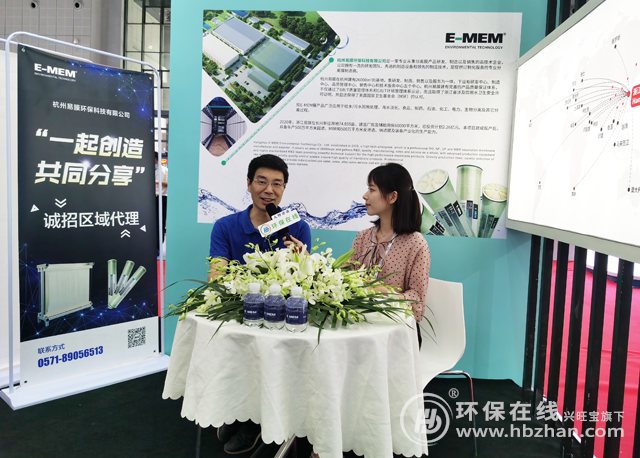 圖為易膜環(huán)保參展相關(guān)企業(yè)負(fù)責(zé)人接受環(huán)保在線專訪