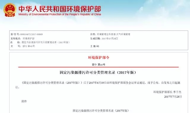 《固定污染源排污許可分類管理名錄(2017年版)》已于2017年6月19日由環(huán)境保護部部務(wù)會議審議通過,現(xiàn)予公布,自發(fā)布之日起施行。