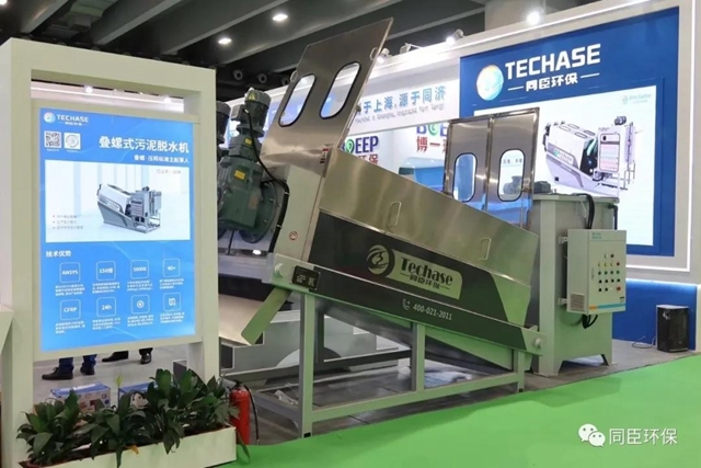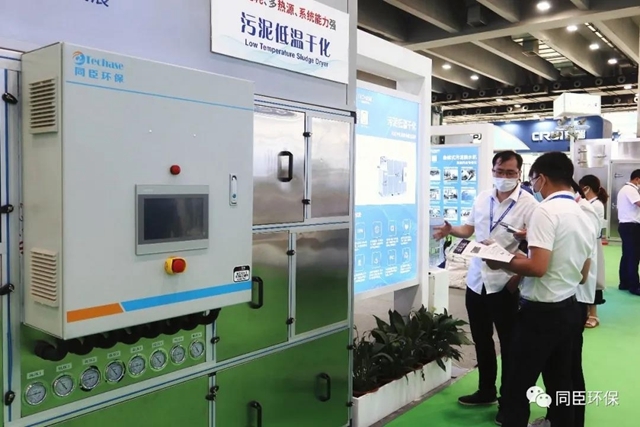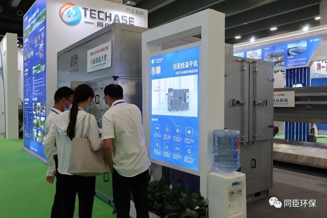 同臣環(huán)保展位位于11.2館D35號。這次同臣不僅帶來了去年廣受關注的疊螺式污泥脫水機、超高壓壓榨機與黑臭水體綜合治理解決方案,還帶來了精心研發(fā)的新品——同臣低溫干化機。