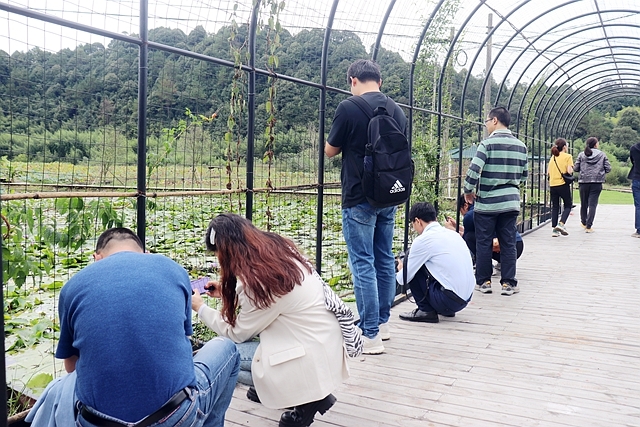 (圖片來源:天創(chuàng)環(huán)境 授權(quán)發(fā)布,版權(quán)歸原作者所有) 當(dāng)然,作為水處理行業(yè)的從業(yè)者,一路行來,與會成員自然而然會更加關(guān)注水質(zhì)情況,時不時進行交流和探討。行至水塘邊,也會忍不住被滿池綠波所吸引,即使過了鮮花怒放的時節(jié),依舊不減看到池清草長的熱情。