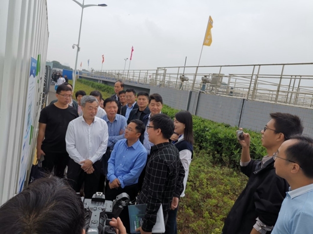 啟動(dòng)儀式后,各位領(lǐng)導(dǎo)專家考察了本次生活污水一體化設(shè)備測(cè)試活動(dòng)地點(diǎn)--長(zhǎng)沙市聯(lián)泰水質(zhì)凈化有限公司(岳麓污水處理廠),易廳長(zhǎng)、江處長(zhǎng)蒞臨安力斯環(huán)境賽博集裝箱一體化設(shè)備現(xiàn)場(chǎng)進(jìn)行參觀指導(dǎo),并詢問(wèn)了安力斯高級(jí)工藝工程師羅工一些具體的技術(shù)指標(biāo)問(wèn)題,對(duì)安力斯的產(chǎn)品和技術(shù)給予了充分的肯定。
