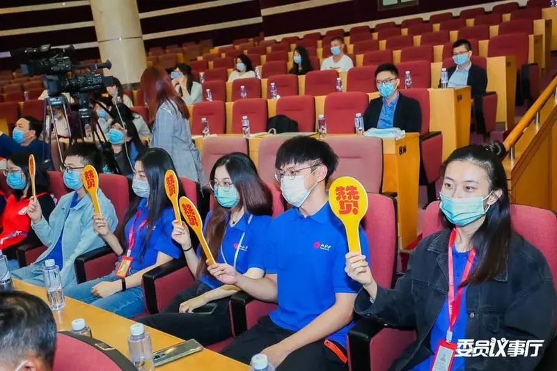 ▲5名大學(xué)生代表為委員嘉賓的精彩發(fā)言點(diǎn)贊。