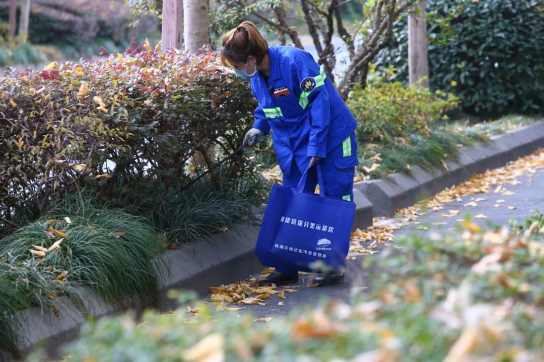 這樣的美景,卻少不了環(huán)衛(wèi)工人的精心“保護(hù)”。與平日工作時(shí)手拿掃帚不同,他們的工具變成了火鉗加環(huán)保袋,不再是大掃帚一路掃過去,而是要慢慢撿拾落葉中的垃圾。“落葉不掃,反而對(duì)我們的工作提出了更高的要求。”上海楊浦環(huán)境發(fā)展有限公司海真保潔分公司新江灣城清道班班長(zhǎng)王興海告訴記者,這要求環(huán)衛(wèi)工人作業(yè)更精細(xì)化,如“繡花”一樣, 不能放過每個(gè)角落,花壇、角落、窨井溝渠處,落葉底下等,都是需要重點(diǎn)撿拾清理的地方。比如要翻找落葉下“藏”著的煙屁股,路旁矮灌木上的落葉,晚上還要用掃帚像雞毛撣子一樣“擼一擼”。